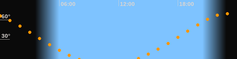 | Untergang | 08:01 Uhr im Nordwesten (αAz = 323,7°) |