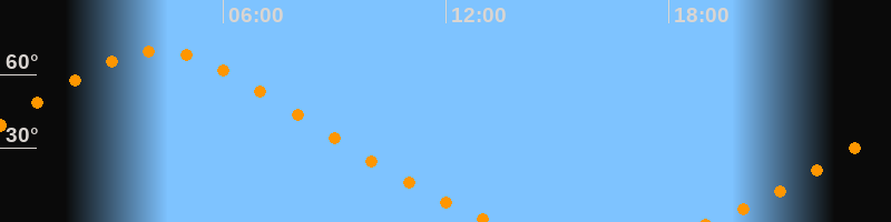 | Untergang | 13:20 Uhr im Nordwesten (αAz = 323,7°) |