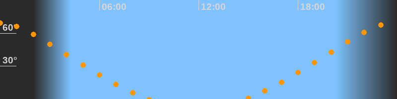 | Untergang | 09:00 Uhr im Nordwesten (αAz = 323,7°) |