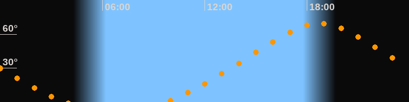 | Höchster Stand (Kulmination) | 18:44 Uhr (h = 69,5°) |