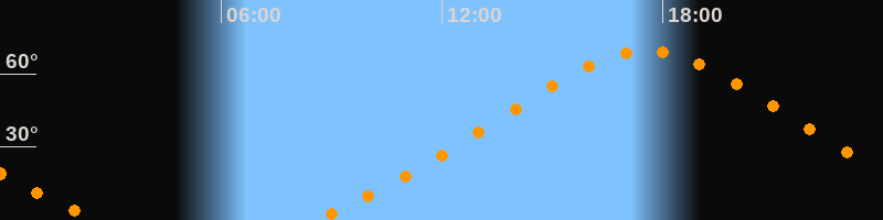 Höchster Stand (Kulmination)17:33 Uhr (h = 69,5°)