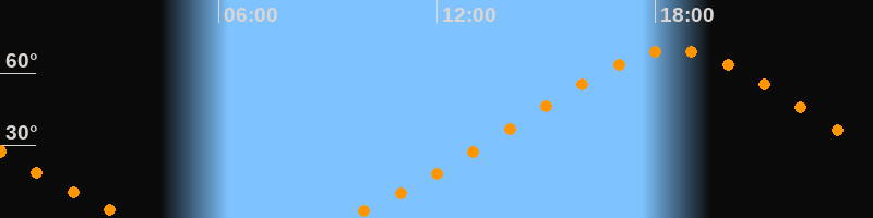 | Höchster Stand (Kulmination) | 18:29 Uhr (h = 69,5°) |