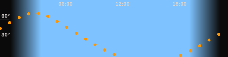 | Aufgang | 18:27 Uhr im Nordosten (αAz = 36,3°) |