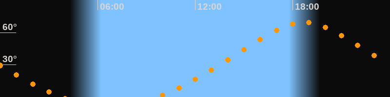 | Höchster Stand (Kulmination) | 18:42 Uhr (h = 69,5°) |