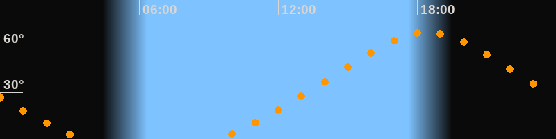 | Höchster Stand (Kulmination) | 18:26 Uhr (h = 69,5°) |