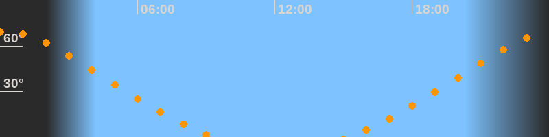 Höchster Stand (Kulmination)00:13 Uhr (h = 69,5°)