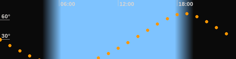 | Höchster Stand (Kulmination) | 18:43 Uhr (h = 69,5°) |