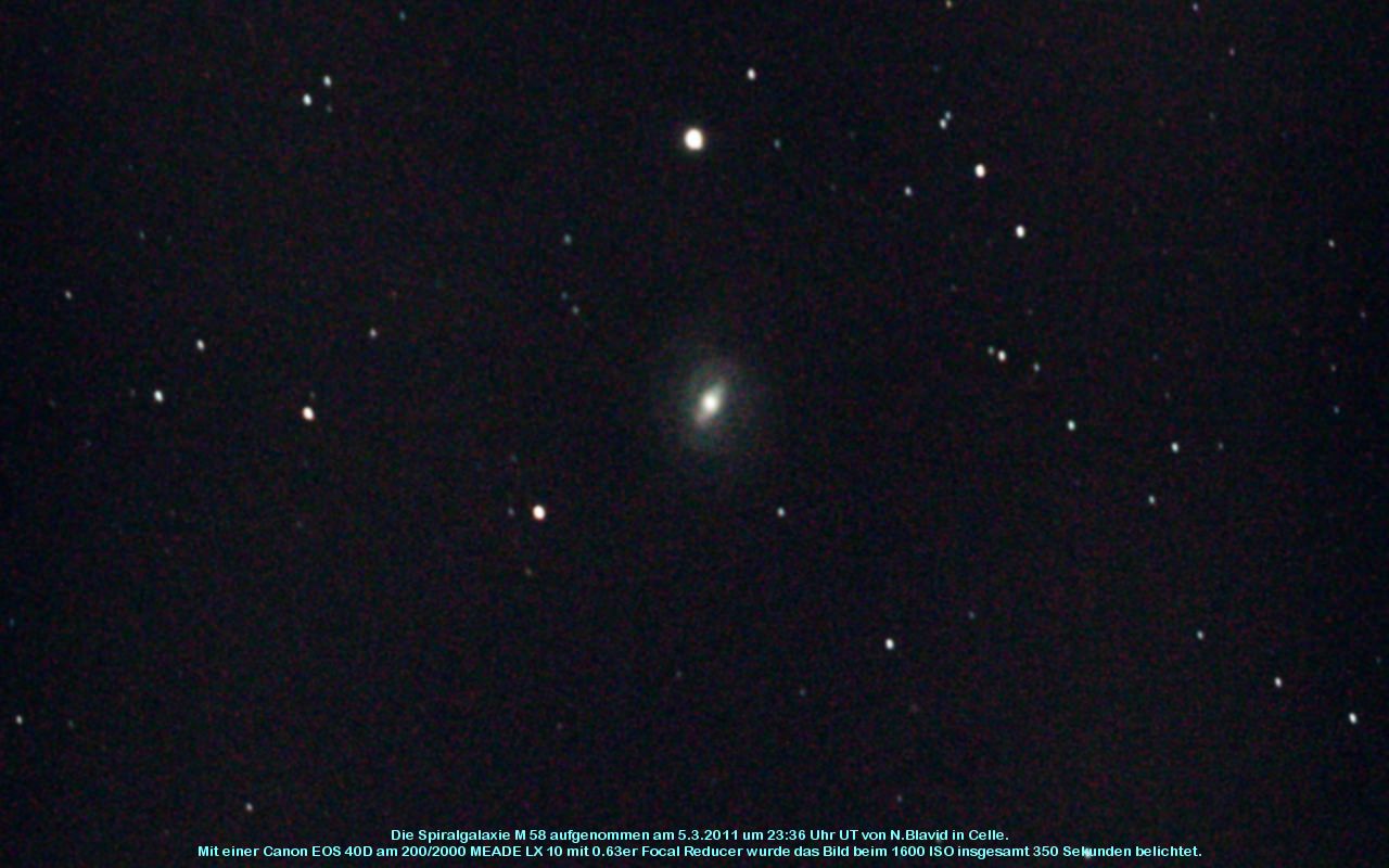 M 58 ist eine Spiralgalaxie im Virgo-Galaxiehaufen. Sie ist vom Typ SABb. Entdeckt wurde sie am 15. April 1779 von Charles Messier.