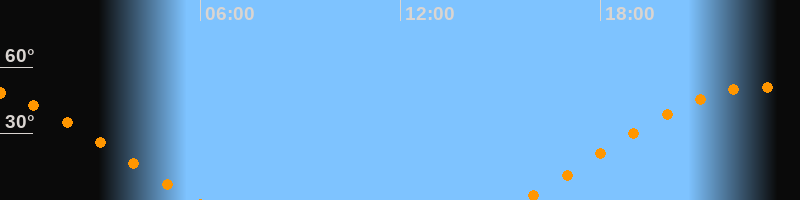 | Aufgang | 15:42 Uhr im Osten (αAz = 70,4°) |