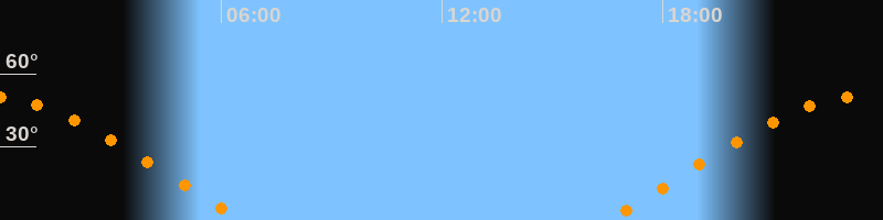 | Aufgang | 16:31 Uhr im Osten (αAz = 70,7°) |