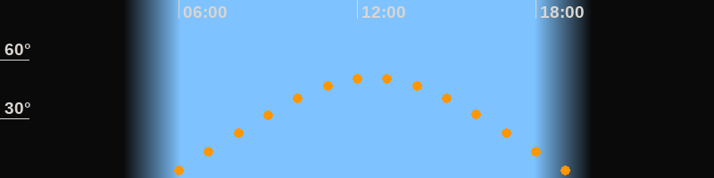 | Höchster Stand (Kulmination) | 12:30 Uhr (h = 50,9°) |