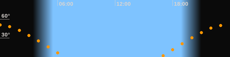 | Aufgang | 16:40 Uhr im Osten (αAz = 70,7°) |