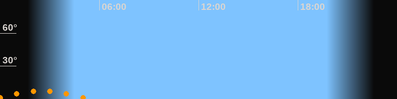 Aufgang23:38 Uhr im Südosten (αAz = 145,1°)