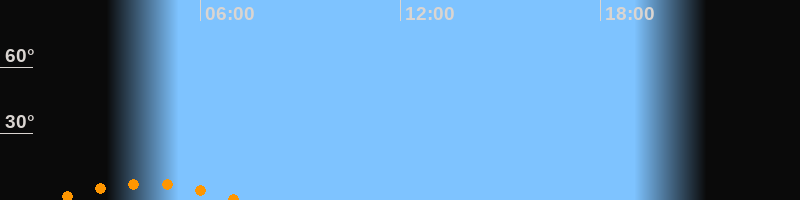 Aufgang01:33 Uhr im Südosten (αAz = 145,1°)