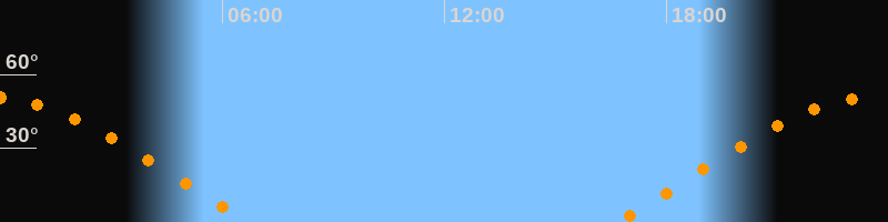 Aufgang16:39 Uhr im Osten (αAz = 70,8°)