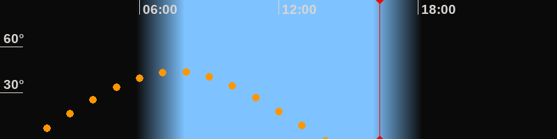 | Höchster Stand (Kulmination) | 07:34 Uhr (h = 43,7°) |