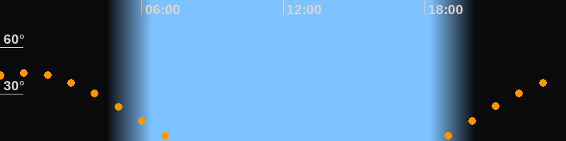 | Höchster Stand (Kulmination) | 01:01 Uhr (h = 43,7°) |