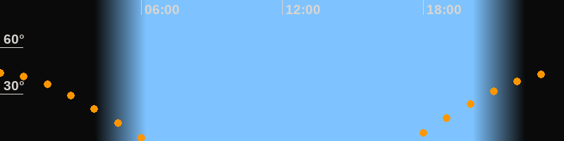 | Aufgang | 17:23 Uhr im Osten (αAz = 82,2°) |