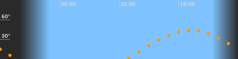 | Höchster Stand (Kulmination) | 19:12 Uhr (h = 43,7°) |