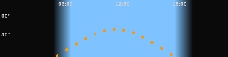 | Höchster Stand (Kulmination) | 12:08 Uhr (h = 43,7°) |
