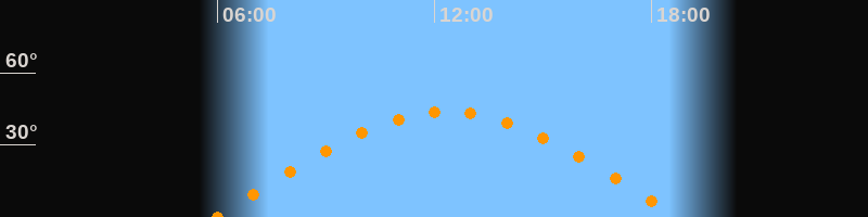 | Höchster Stand (Kulmination) | 12:21 Uhr (h = 43,7°) |