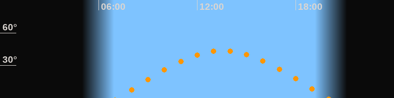 | Höchster Stand (Kulmination) | 13:32 Uhr (h = 43,7°) |