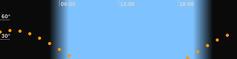 | Aufgang | 18:45 Uhr im Osten (αAz = 82,2°) |