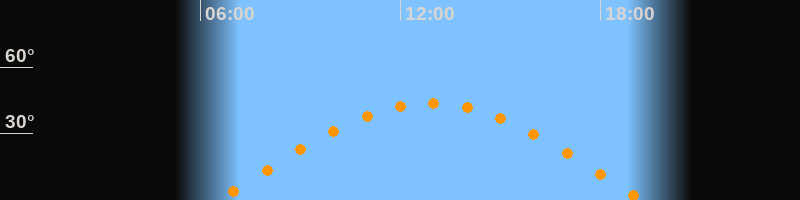 Höchster Stand (Kulmination)12:54 Uhr (h = 43,7°)