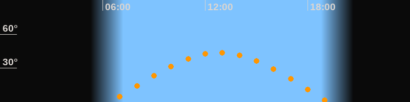 Aufgang06:25 Uhr im Osten (αAz = 82,2°)