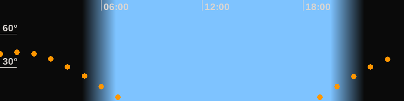 | Aufgang | 18:34 Uhr im Osten (αAz = 82,2°) |