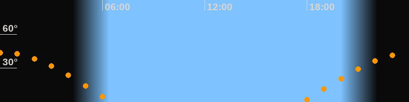 | Aufgang | 17:43 Uhr im Osten (αAz = 82,2°) |