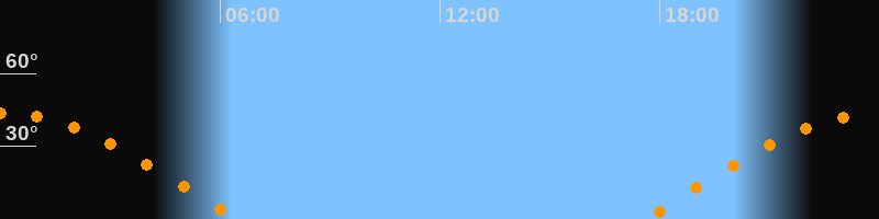 | Aufgang | 17:35 Uhr im Osten (αAz = 82,2°) |