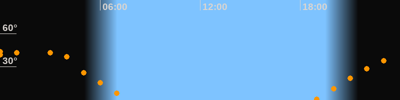 | Aufgang | 18:50 Uhr im Osten (αAz = 82,2°) |