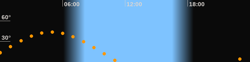 | Höchster Stand (Kulmination) | 04:55 Uhr (h = 43,7°) |