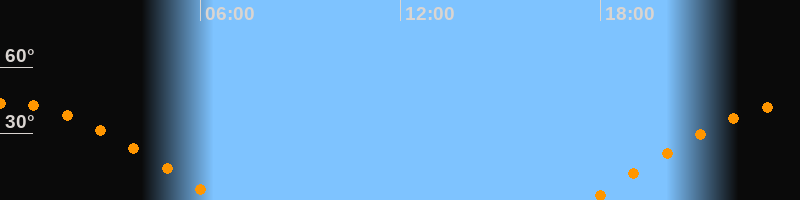 | Aufgang | 17:41 Uhr im Osten (αAz = 82,2°) |