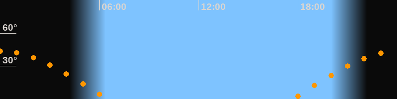 | Höchster Stand (Kulmination) | 00:02 Uhr (h = 43,7°) |