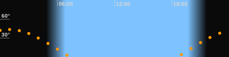 | Aufgang | 18:29 Uhr im Osten (αAz = 82,2°) |