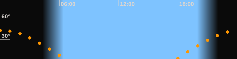| Höchster Stand (Kulmination) | 00:11 Uhr (h = 43,7°) |