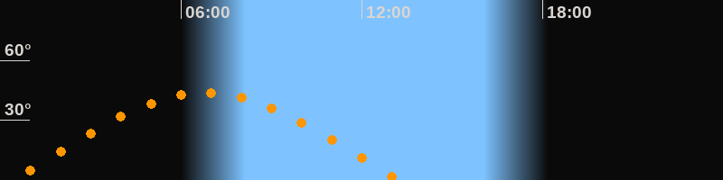 | Höchster Stand (Kulmination) | 06:49 Uhr (h = 43,7°) |