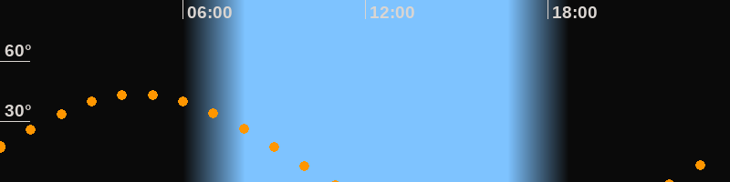 | Höchster Stand (Kulmination) | 04:31 Uhr (h = 43,7°) |