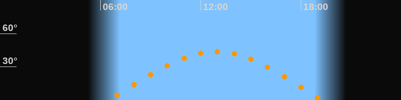 | Höchster Stand (Kulmination) | 12:53 Uhr (h = 43,7°) |