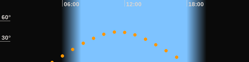 | Höchster Stand (Kulmination) | 11:23 Uhr (h = 43,7°) |