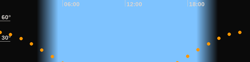 | Untergang | 05:55 Uhr im Westen (αAz = 277,8°) |