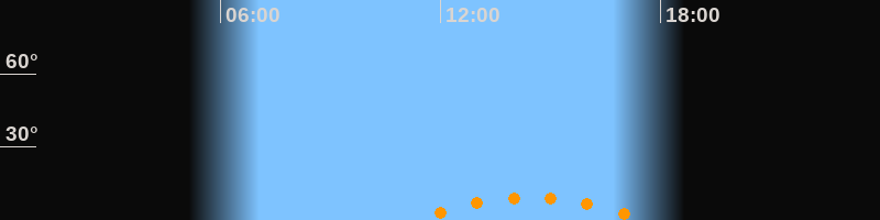 | Aufgang | 11:19 Uhr im Südosten (αAz = 140,8°) |
