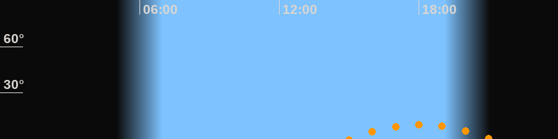 | Höchster Stand (Kulmination) | 18:04 Uhr (h = 9,4°) |