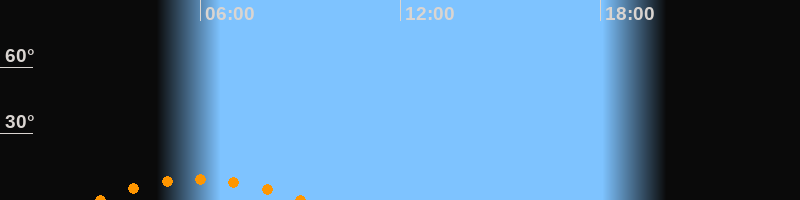 | Untergang | 09:05 Uhr im Südwesten (αAz = 219,2°) |