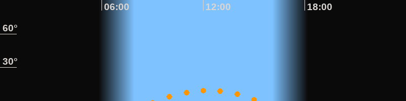 | Aufgang | 09:08 Uhr im Südosten (αAz = 140,8°) |