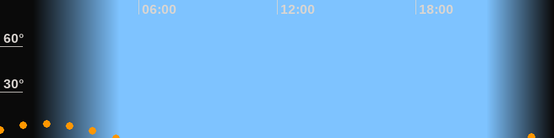 | Untergang | 05:03 Uhr im Südwesten (αAz = 219,2°) |