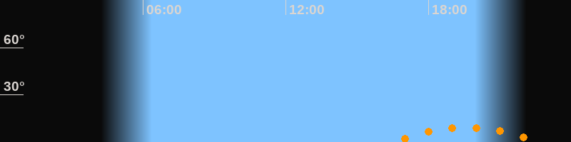 | Aufgang | 16:28 Uhr im Südosten (αAz = 140,8°) |