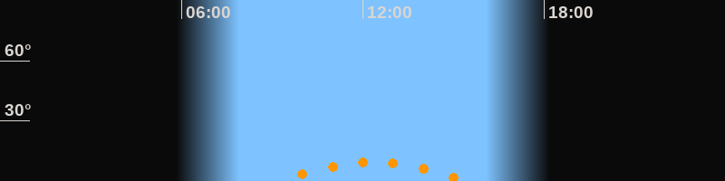 | Aufgang | 09:14 Uhr im Südosten (αAz = 140,8°) |
